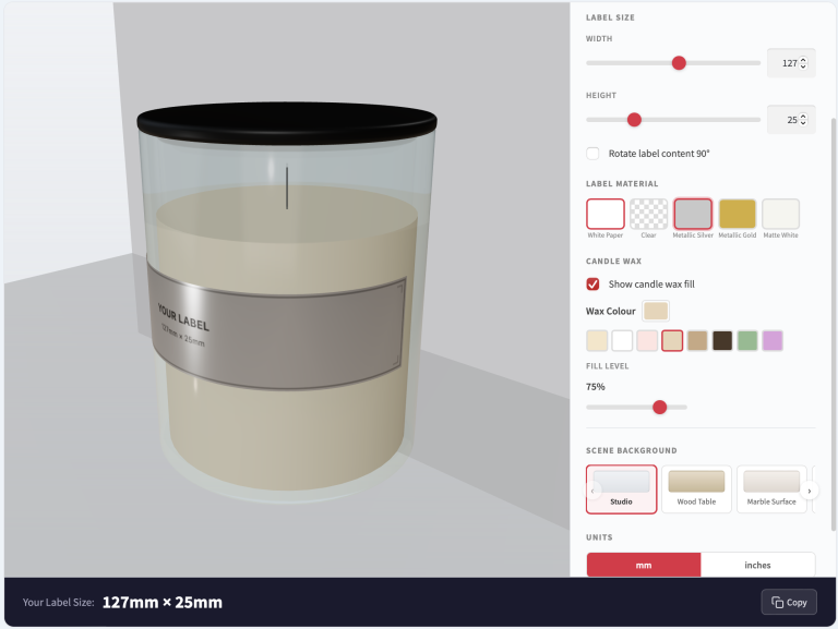 Choosing the right label size can be tricky — too wide and it overlaps, too tall and it crowds the lid. Our interactive 3D sizing tool takes the guesswork out of the process. Simply select your container type, adjust the label dimensions, and see exactly how your label will look wrapped around the real thing.